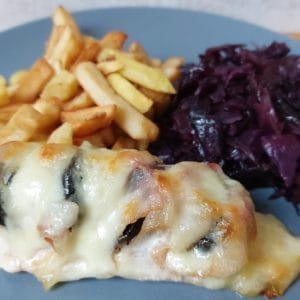 9. Tedd az aszalt szilvával sajttal töltött csirkemelleket a 180 fokra előmelegített sütőbe és süsd 30-45 percig, ez a csirkemell méretétől függ. A végén pár percre kapcsold rá a grill fokozatot, hogy a teteje megpiruljon.
