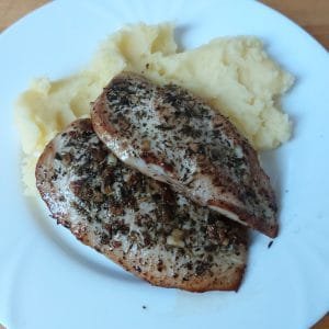 7. El is készült a zöldfűszeres csirkemell, én krumplipürével tálaltam, de készíthetünk mellé salátát is.