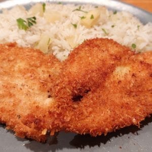 10. A kisült kókuszbundás csirkemellet tedd rácsra, hogy a felesleges zsiradék le tudjon csöpögni. Teheted konyhai papírtörlőre is, az is felszívja a zsiradékot, de ne hagyd rajta sokáig, mert az olajtól visszapuhul a bundája és nem lesz ropogós.