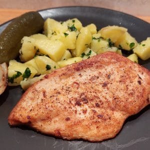 Laci pecsenyének a gyors tüzön, paprikás zsírban sült tarját hívják, ebből is látszik, hogy az eredeti Laci pecsenye tarjából készül, de ezt az elkészítési módot csirkemellhez is fel lehet használni.