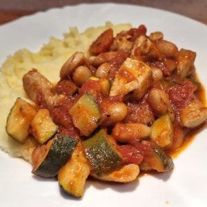 11. Amikor minden zöldség megpuhult, keverd az olaszos csirkemell raguhoz a babkonzervet is.